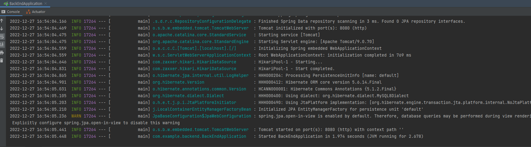 상단에 BanEndApplication을 눌러 실행을 시켜보